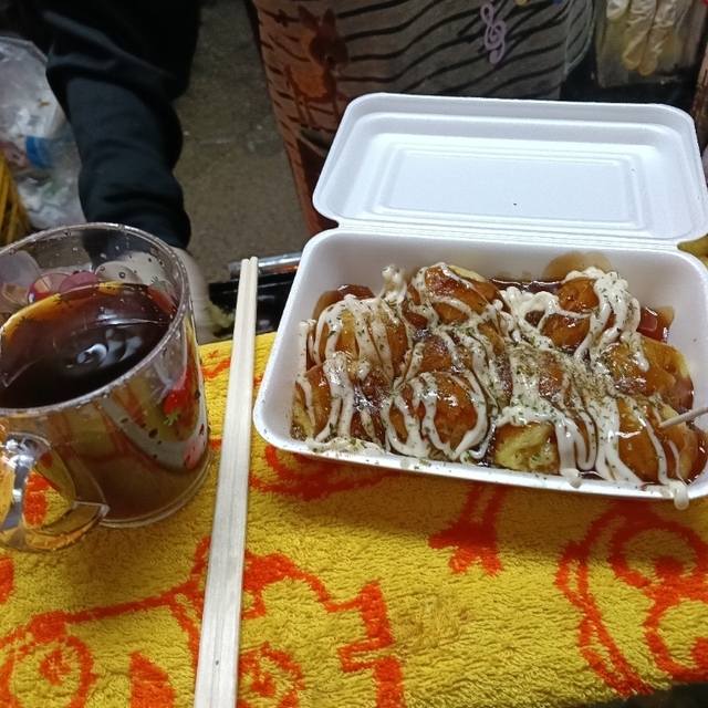 この日、たこ焼きを焼いているのは娘さんで、寛子おばあちゃんは後ろでお茶を入れたり、たこ焼きにソースなどをかけて接客されていました。