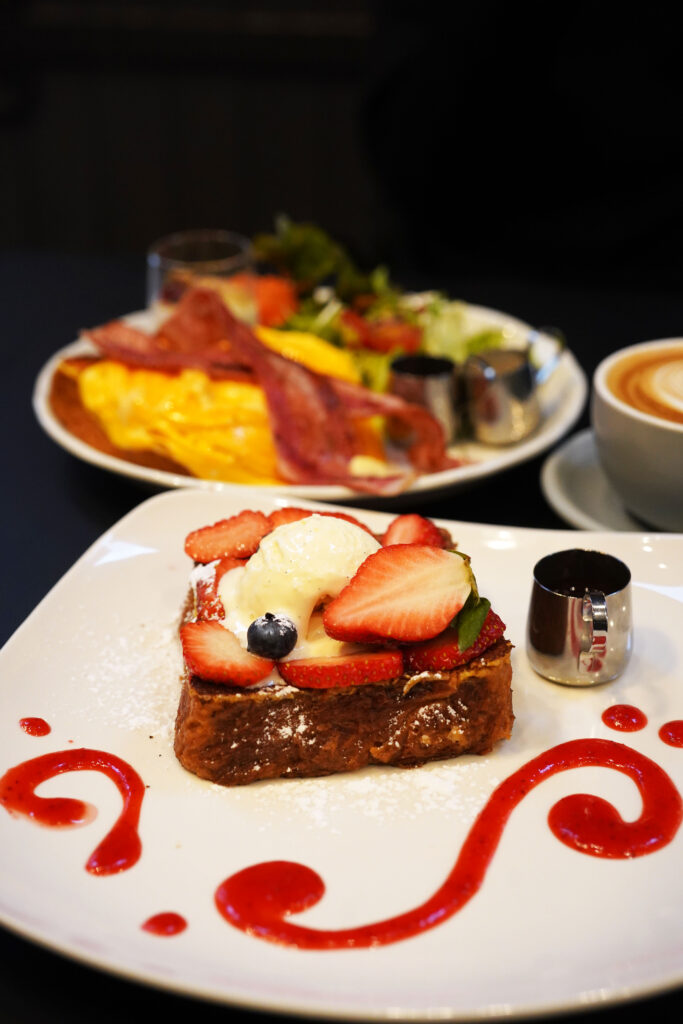 ほんのり甘さのあるフレンチトーストに甘酸っぱいベリーソース、そしてみずみずしい苺を甘さと酸っぱさのコンビネーションを楽しめます。