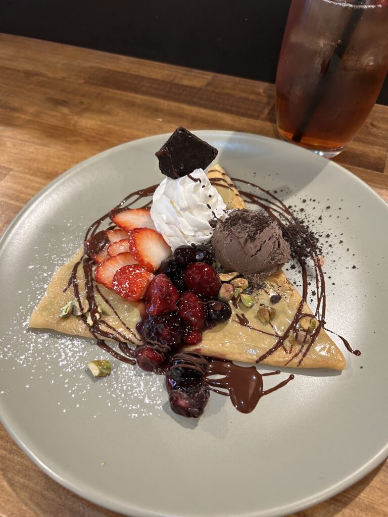 様々なフルーツにチョコ、ピスタチオ、モンブランを使ったスペシャルなクレープ。