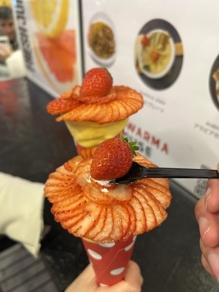 SNSで苺を使った花びらのような美しいクレープを見つけて食べたくなって行ってきました。