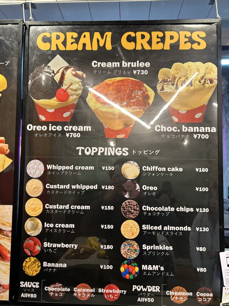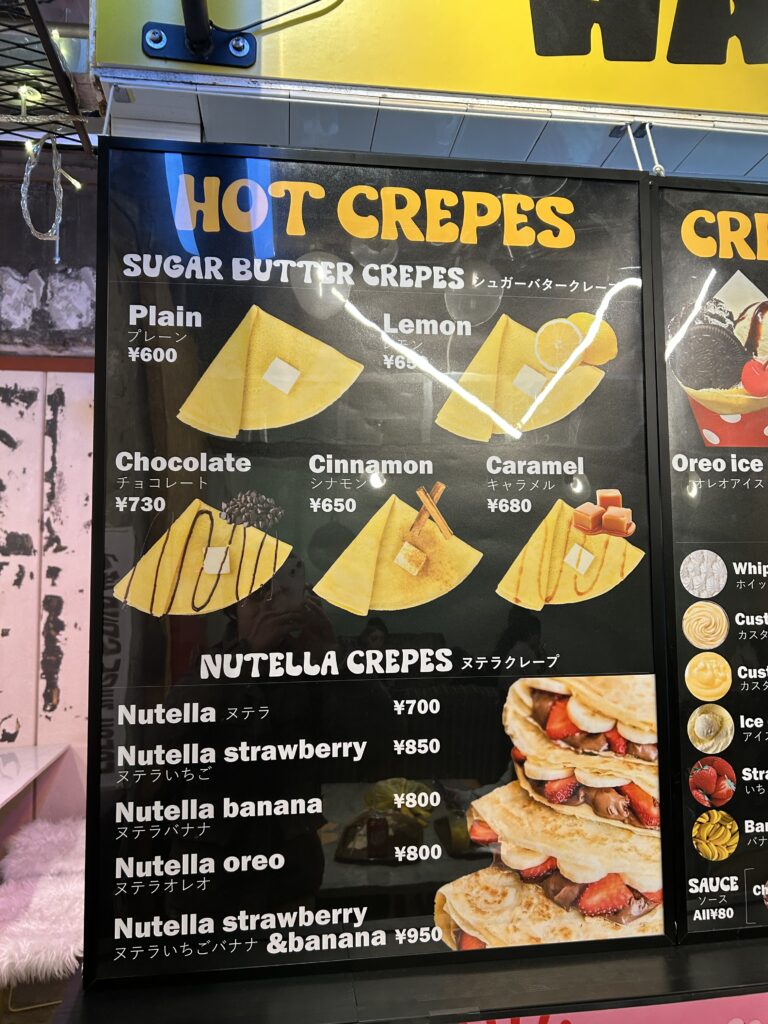 こちらがその他のクレープでシンプルなものに加えてヌテラクリームを使ったクレープもありました。