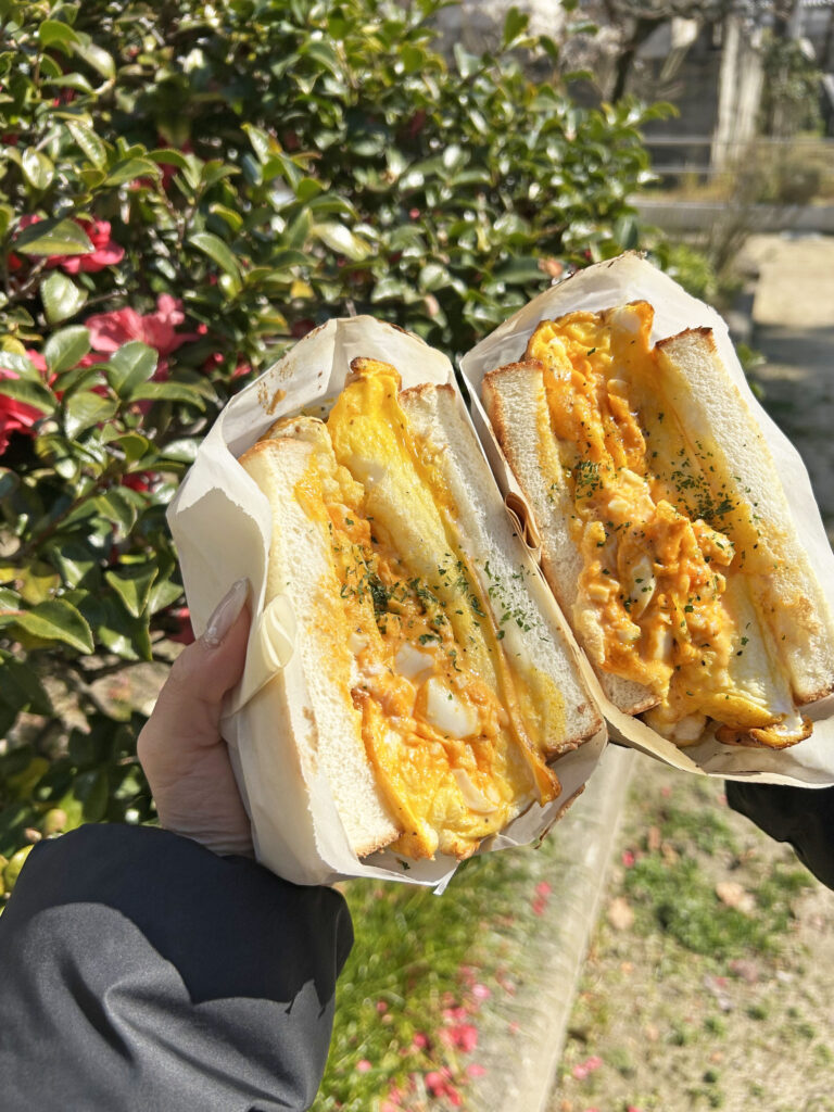 「こんなにデカいサンドイッチは反則だ」さんは、海外にも人気、ボリュームたっぷりのぷわぷわの玉子サンドが食べられる