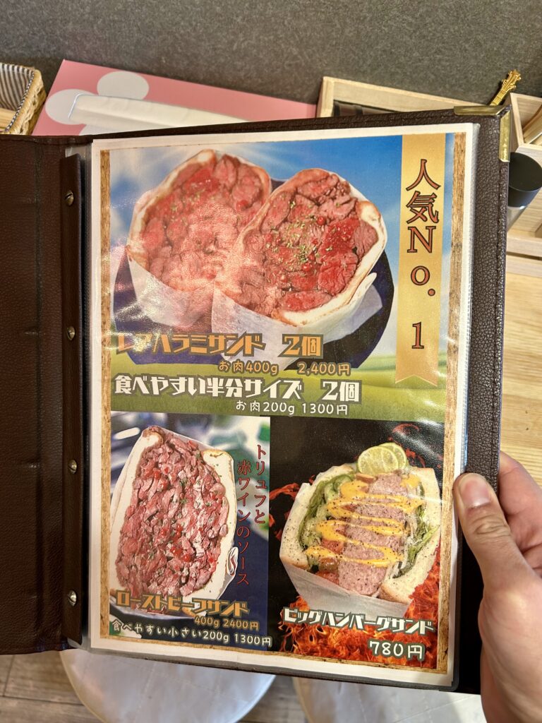 人気No.1はレアハラミサンド、その他にもローストビーフやハンバーグサンドとお肉系がありました。