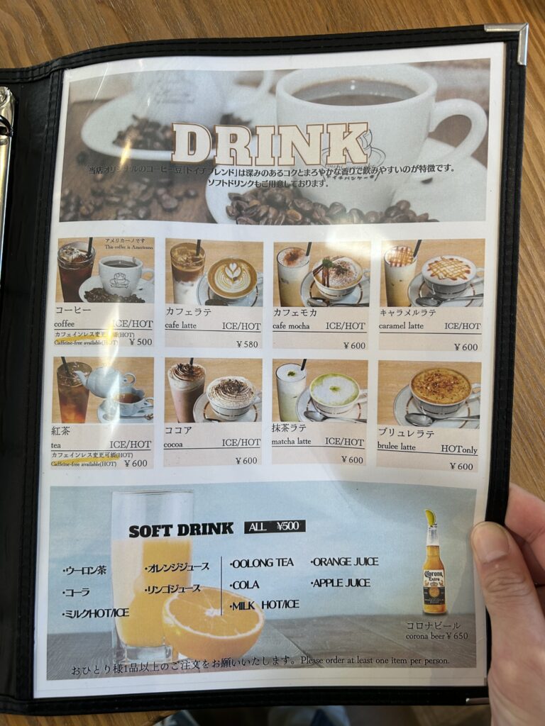 ドリンクは3Dラテアートに、通常のドリンクも種類豊富。