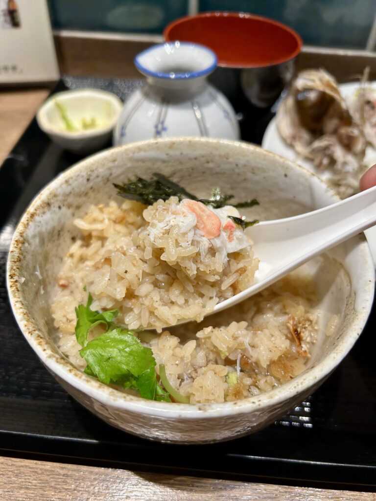 蟹のすり身があって、出汁がお米一粒一粒にしっかりと旨味がしみ込み美味しい。