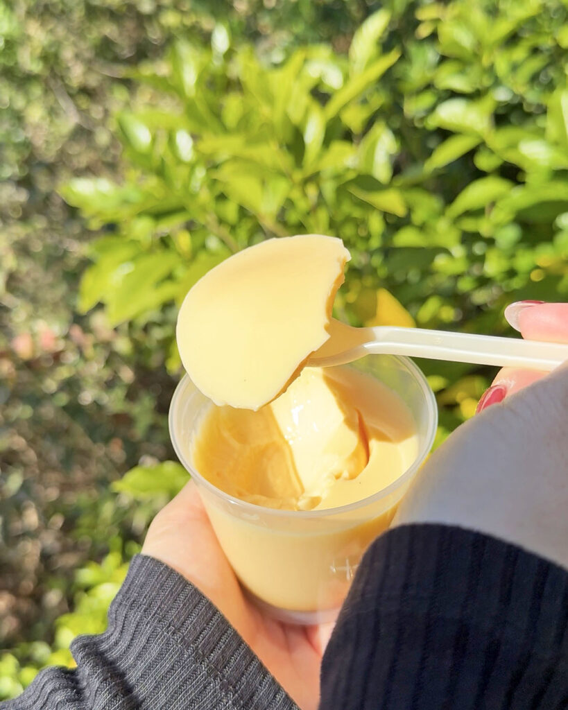 柔らか食感とともに濃厚な卵やミルクの味わいと共にバニラビーンズの香りが口の中に広がってきます。