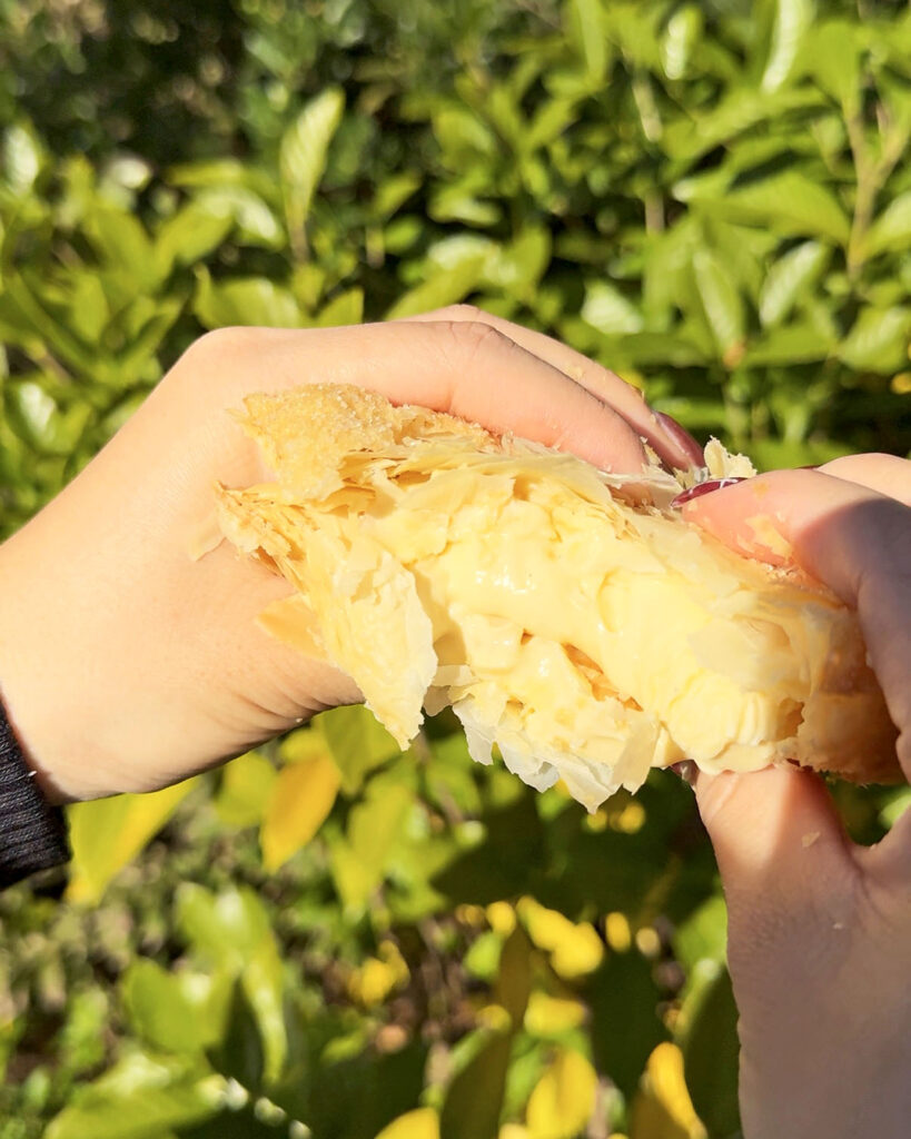 パイ生地に注文してからカスタードクリームを詰めたスイーツ。
