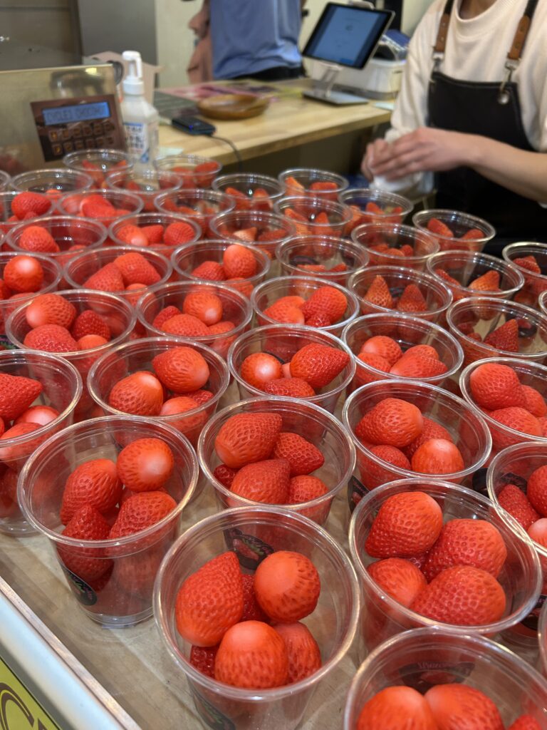 他のお店と同じく、鮮やかなたくさんの苺がずらりと並んでいました!