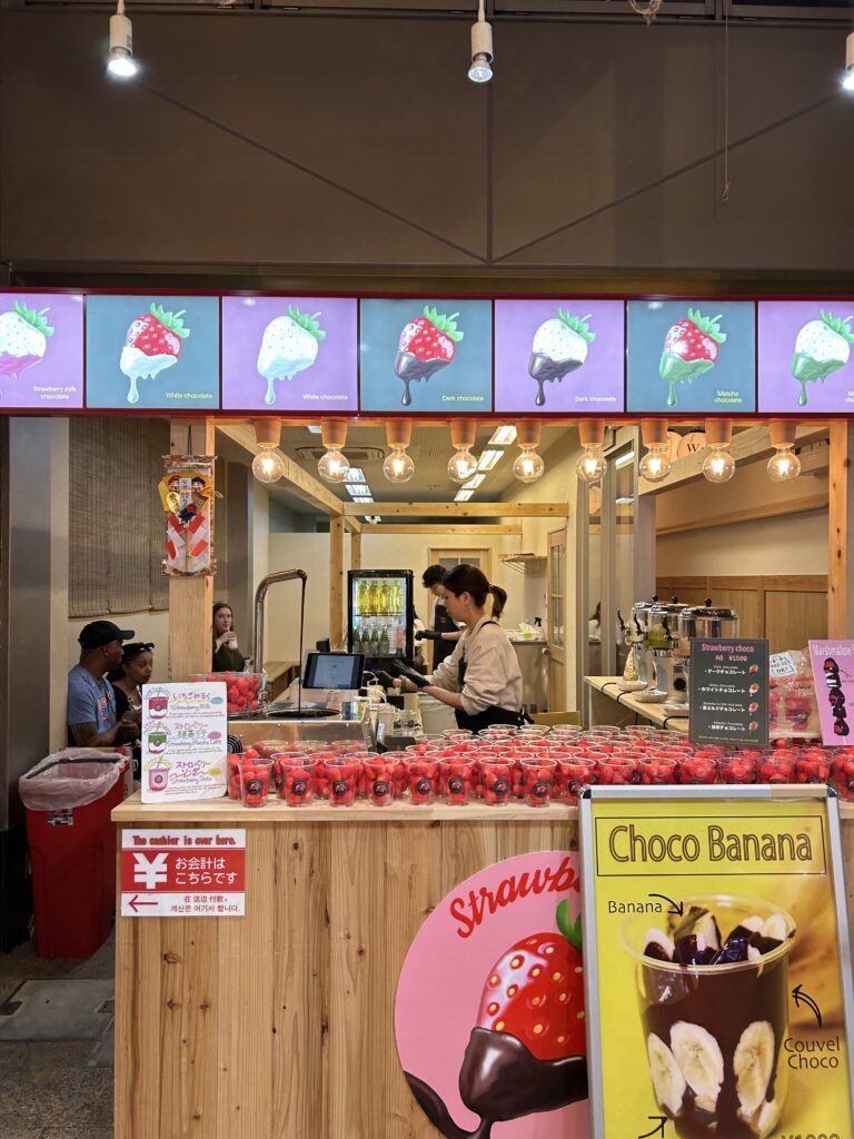 「Strawberry choco(ストロベリーチョコ)京都錦市場店」さんは、国産苺を贅沢に使ったチョコスイーツを錦市場で食べ歩きできる