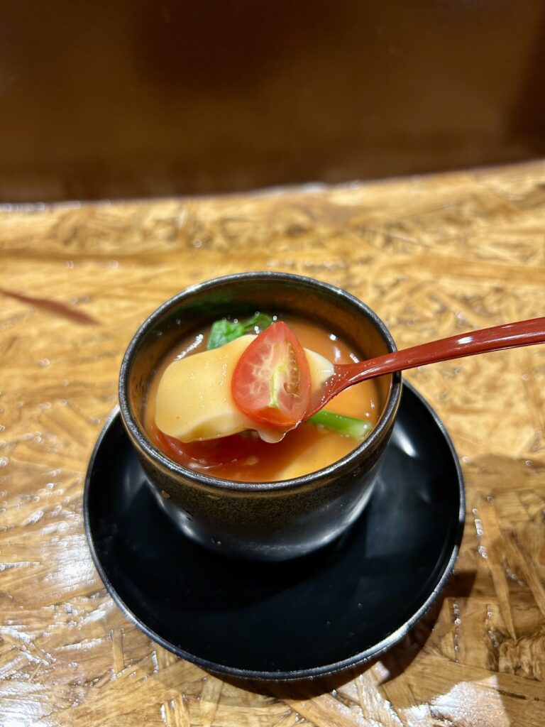 箸休めで茶碗蒸し、冷製になっていてひんやり感にトマトが良く合う。