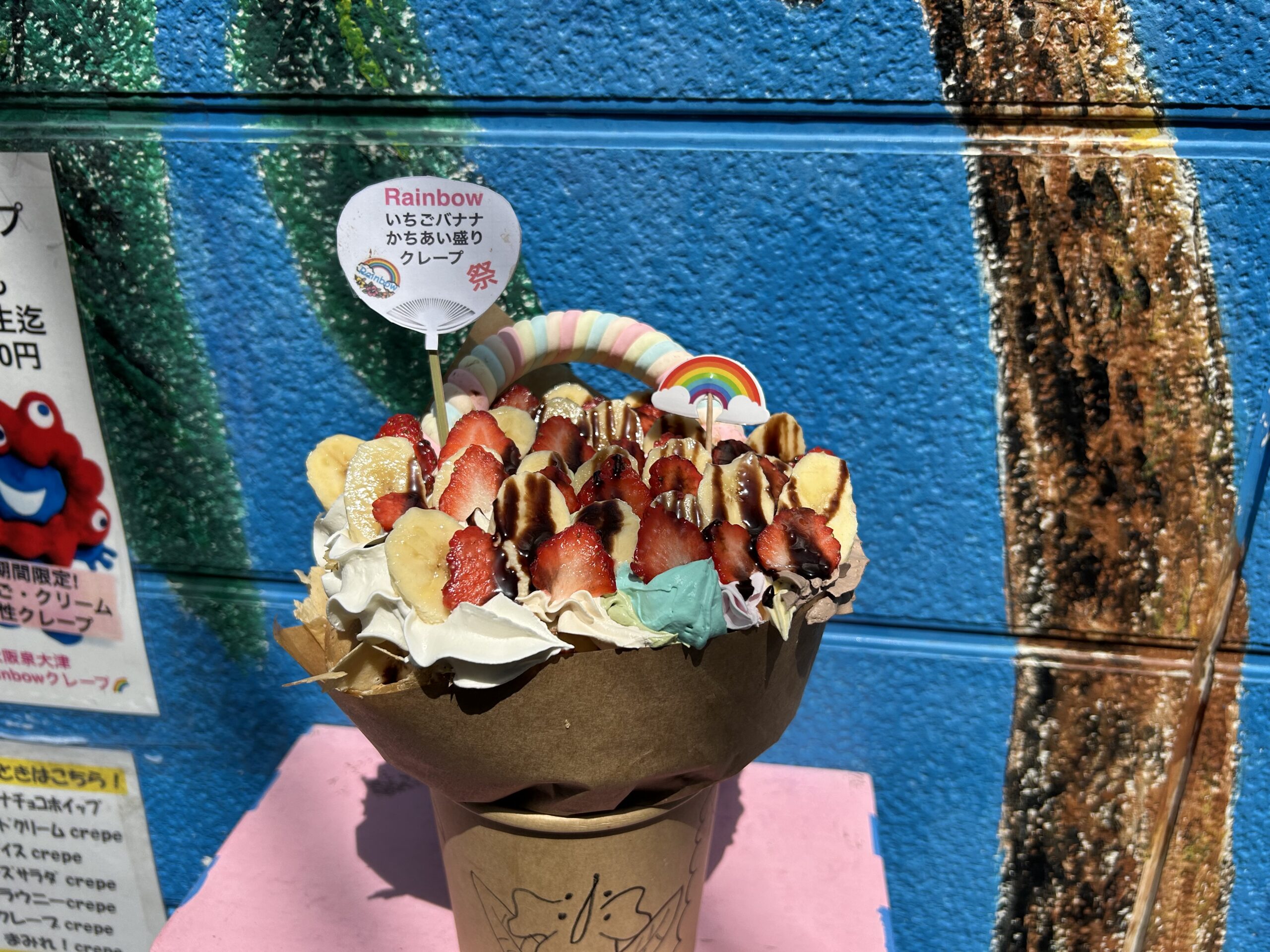 【大阪・岸和田】「Rainbow(レインボー)」トッピングたっぷりのデカ盛りクレープが名物