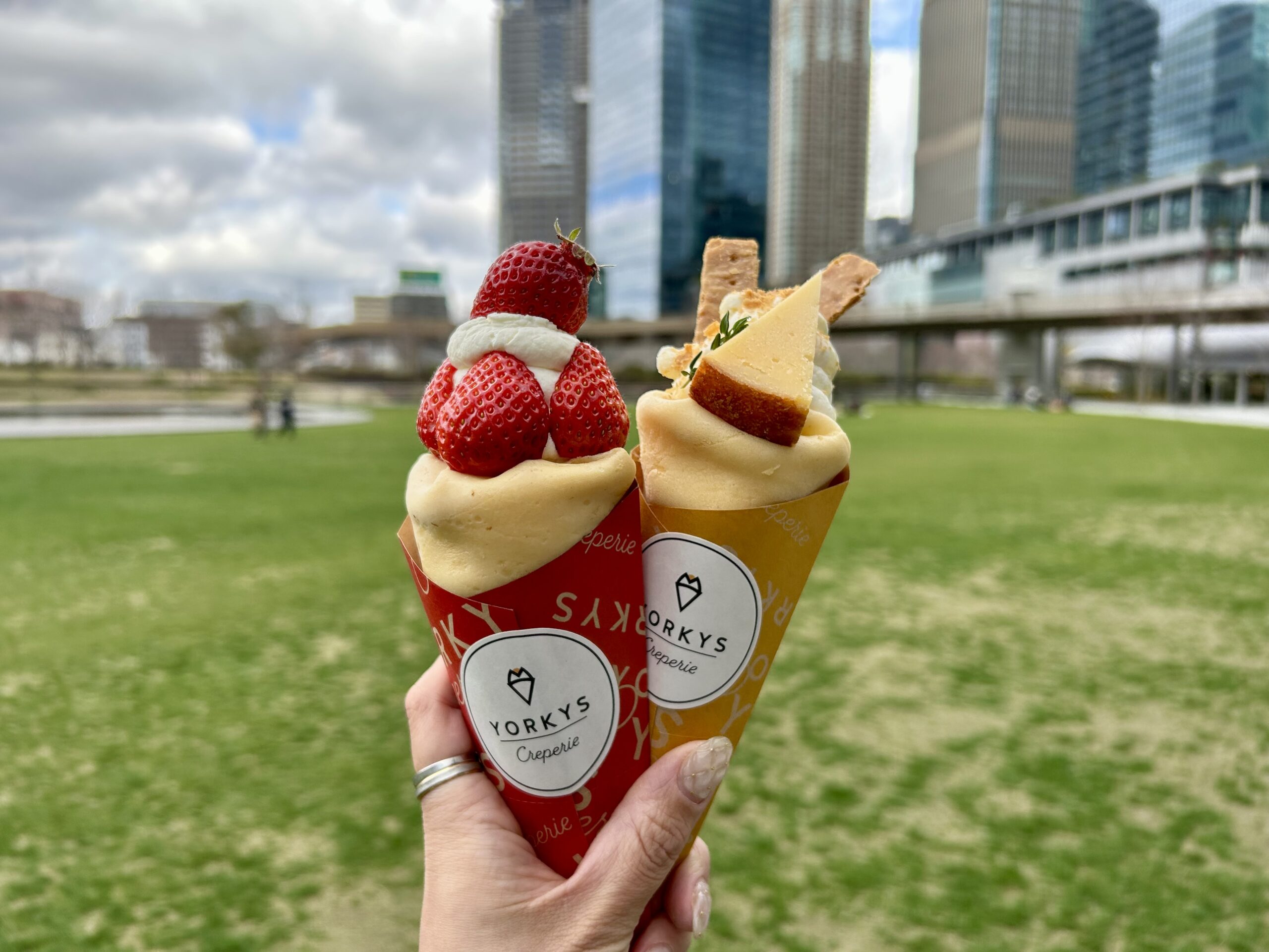 もっちり生地の中にもクリームがたっぷりで大満足のデカ盛りクレープでした。