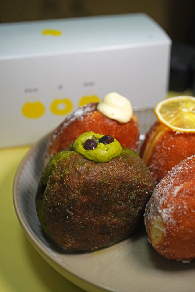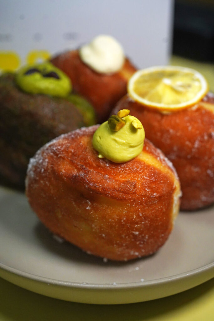 ドーナツはプレーンの他に人気のピスタチオ、ラズベリー、抹茶などいろんなフレーバーが揃います。