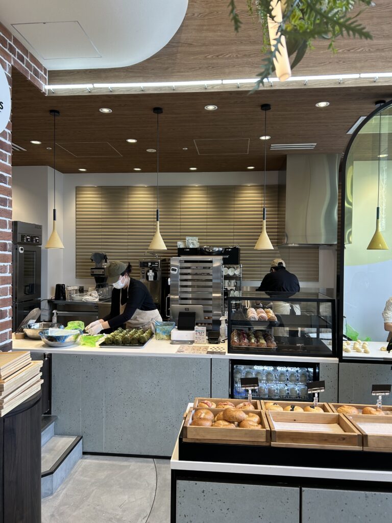 お店に入って右手が販売ブースで、ドーナツにベーグルが並んでいました。