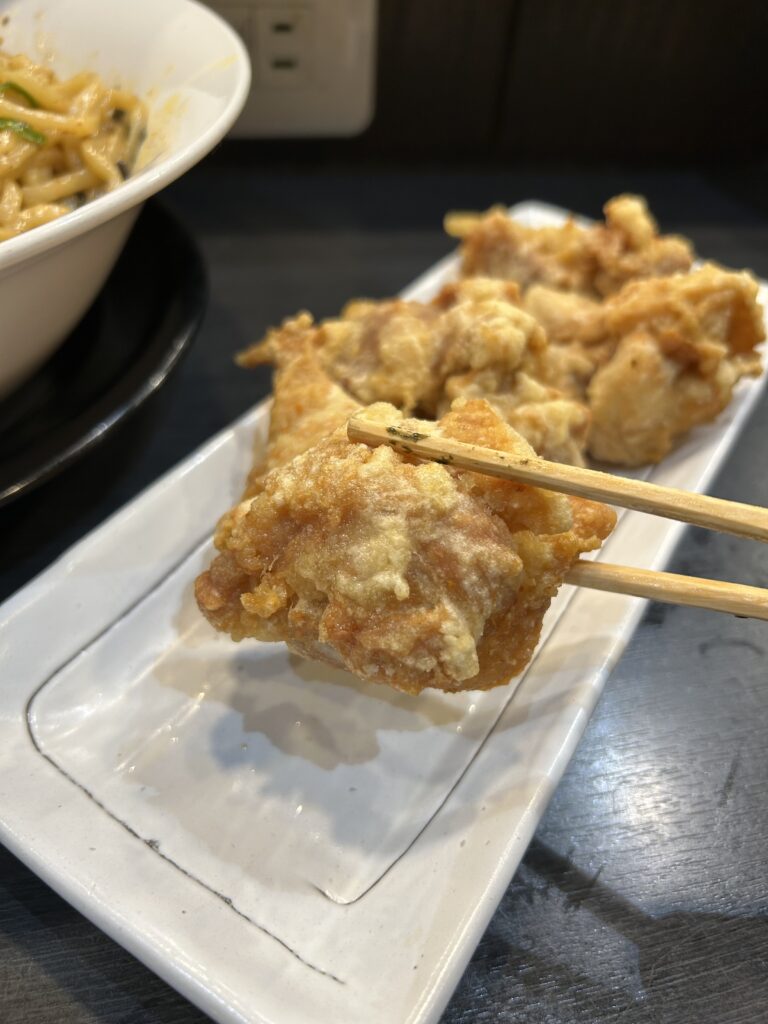 ぼっかけが入った油そばにお腹空いていたのでサイドメニューを二品注文。