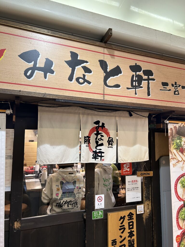 「みなと軒 三宮高架下店」さんは12時間かけて丹念にしっくり煮込んだとんこつラーメンが人気