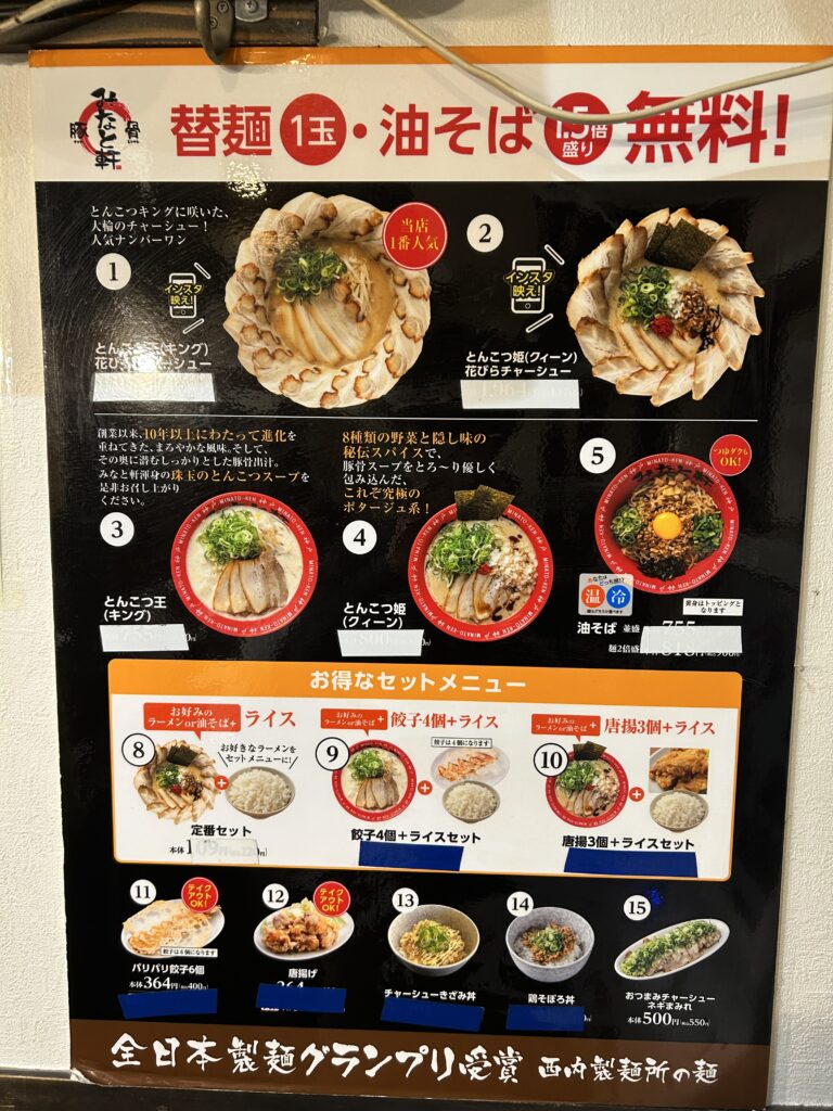 ラーメンは替え玉、油そばは麺量1.5倍が無料となっているのは嬉しいですね。