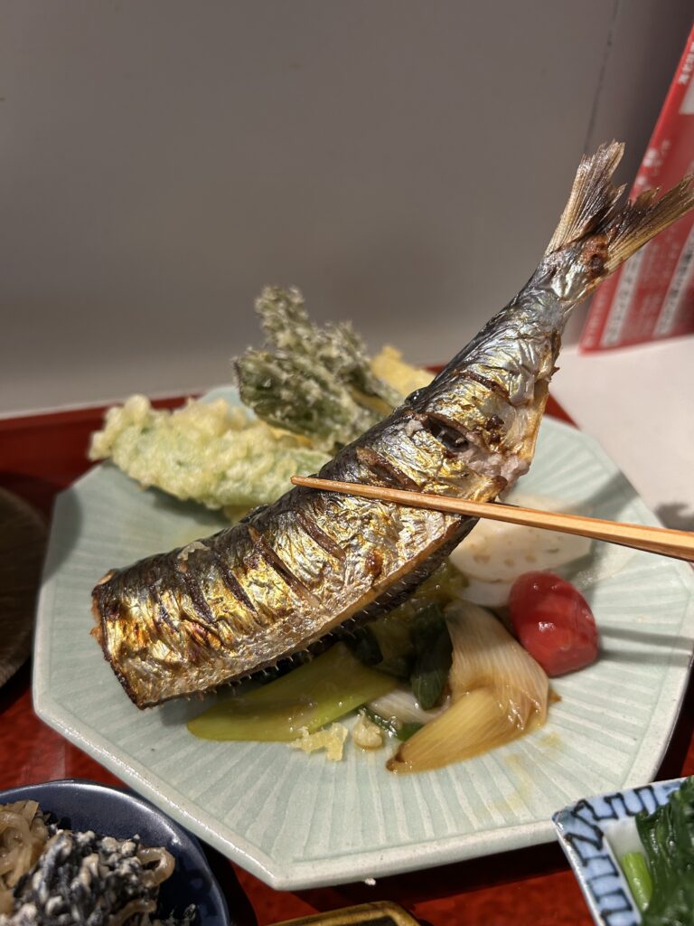 注文をしてから焼いてもらえる魚炭焼、この日は鰯で、柔らかくて美味しい。