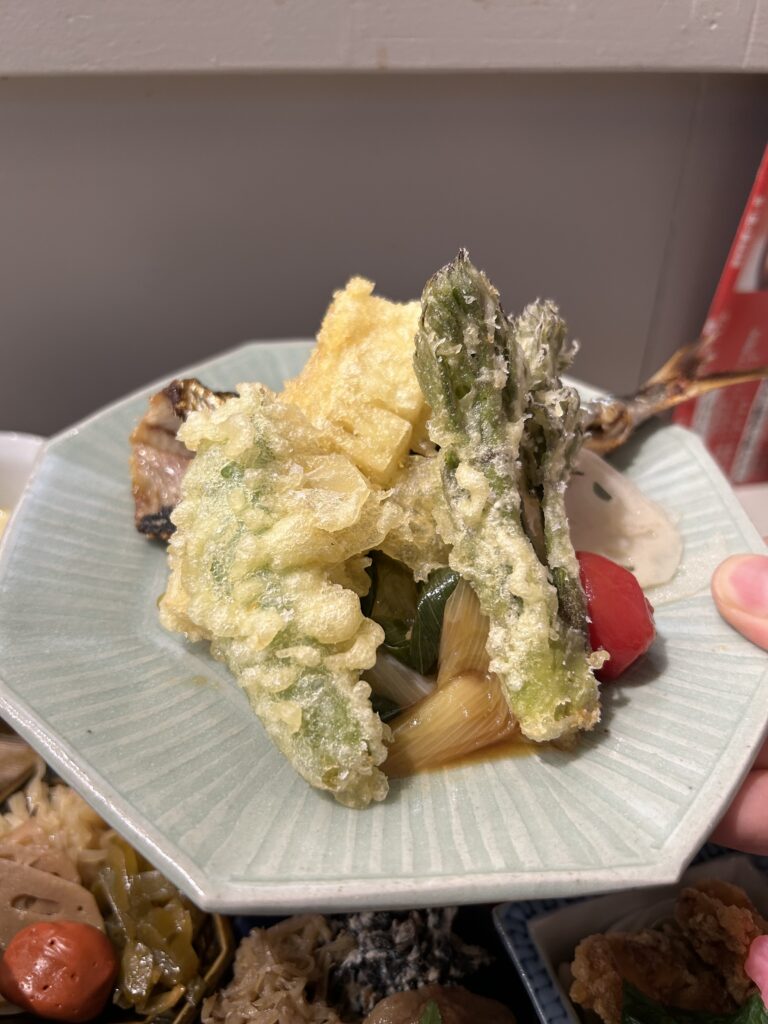 筍、エンドウ豆など天ぷらも注文後に揚げているのでサクサクでほんのりと塩味です。