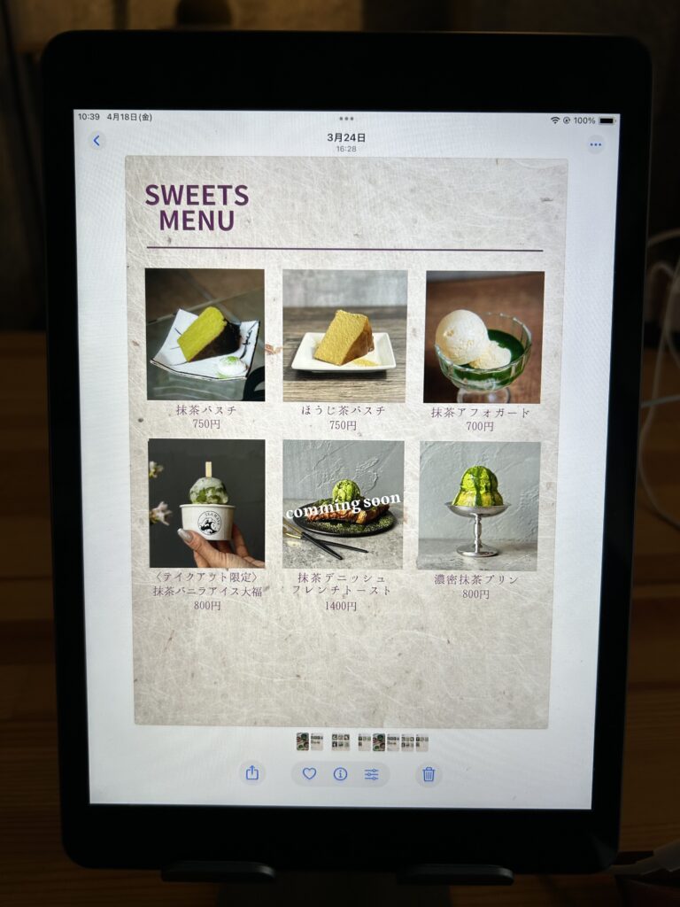 スイーツは抹茶バスクチーズケーキに、抹茶プリン、ほうじ茶バスクチーズケーキなど。