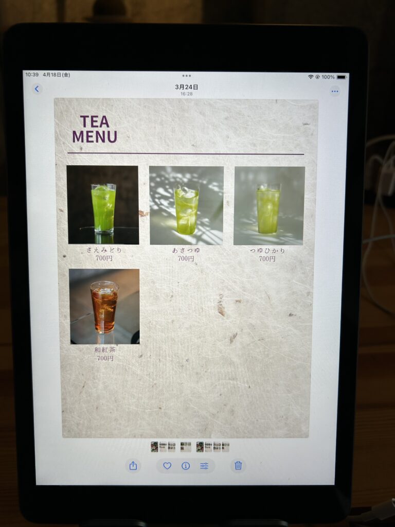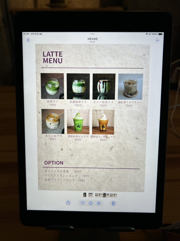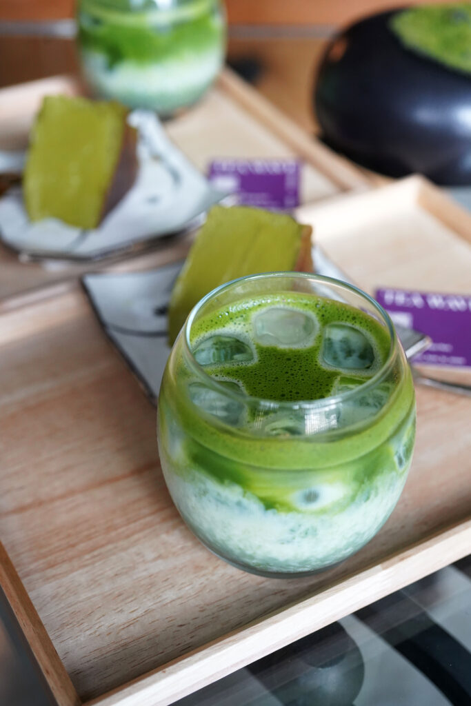 九州産茶葉をふんだんに使ったドリンクは抹茶やほうじ茶があり、黒蜜やチョコをプラスした変わり種もありました。