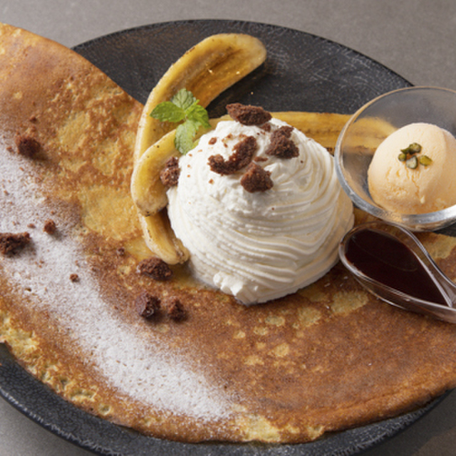 ピスタチオを贅沢使用したピスタチオクリームに、生クリーム、濃厚な自家製のバニラアイスをトッピング。