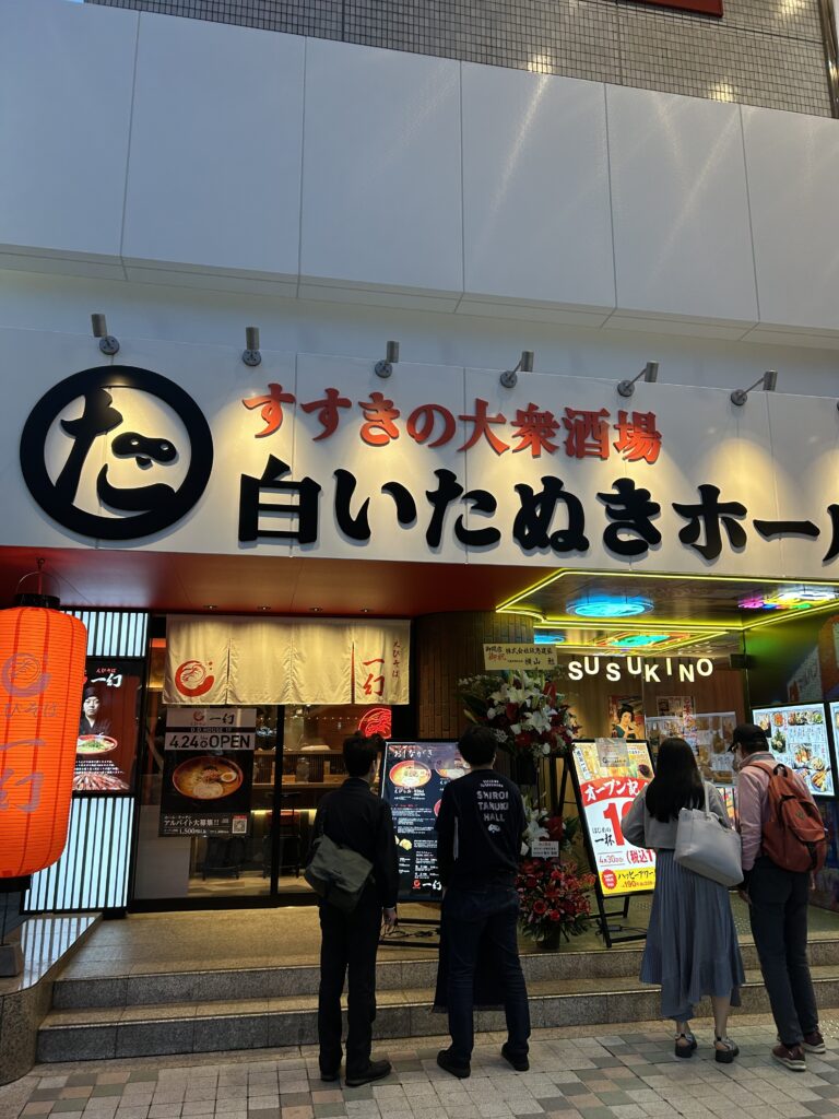 「すすきの大衆酒場 白いたぬきホール」さんは2025年4月にオープンした札幌・すすきのの賑わいを楽しめる大衆酒場でこだわりの海鮮メニューを食べる事ができます。