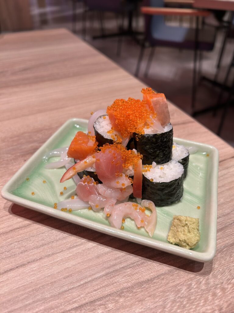 海鮮を贅沢に盛り付けた名物メニューで、トロやサーモンなどのいろんな海鮮を楽しめます。