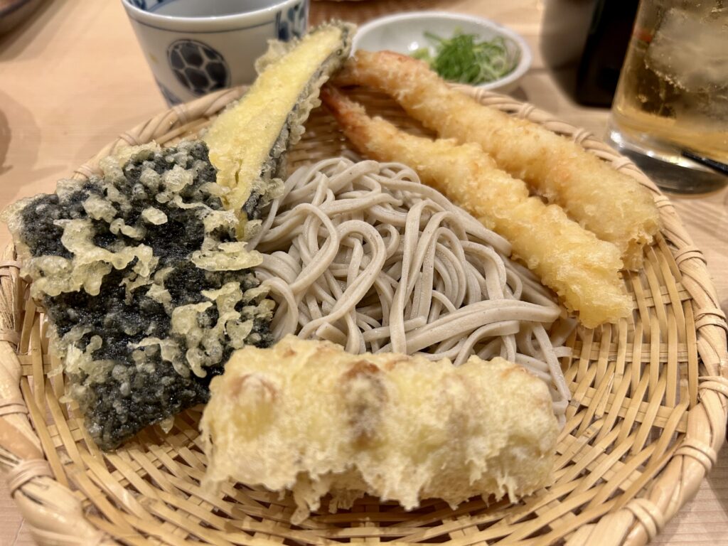 天ぷらはエビ天、海苔天などがついていて大満足のお蕎麦。