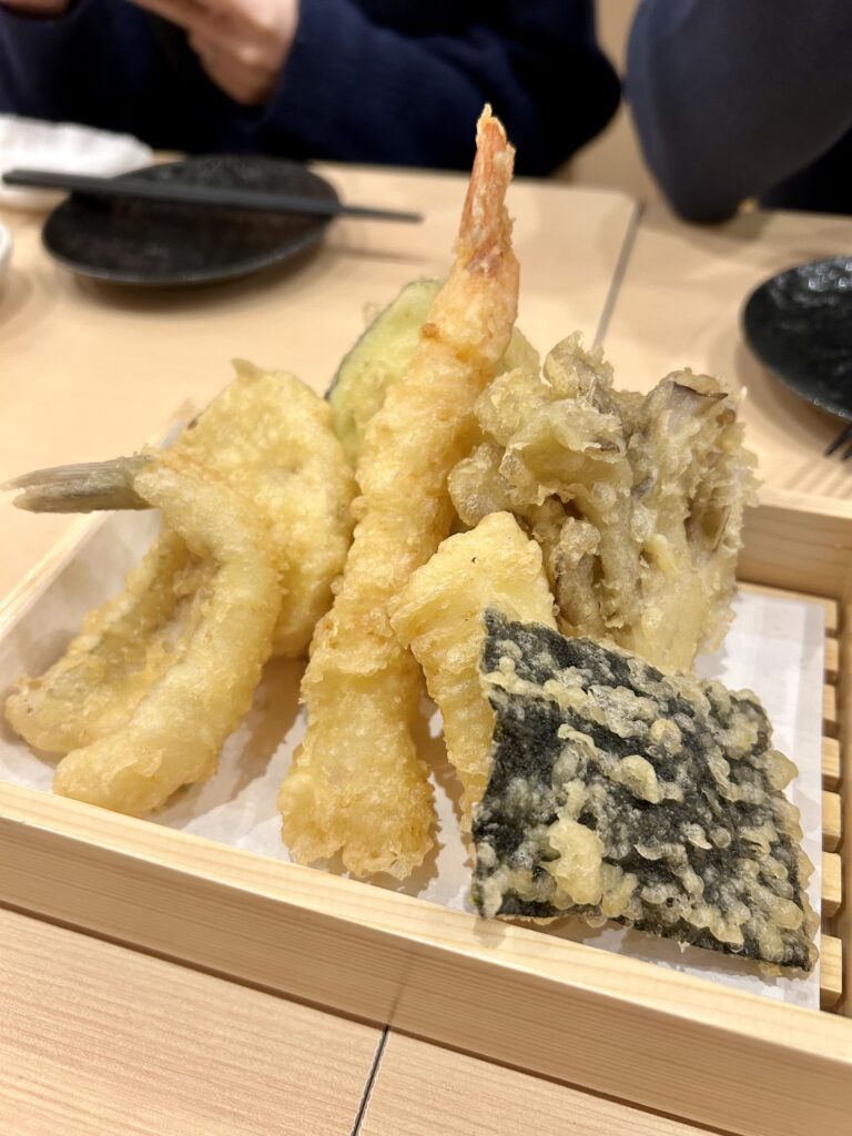 エビ天にかぼちゃ天、海苔天などなどサクサク衣に覆われていて美味しい。