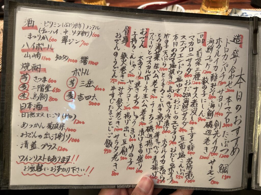 おすすめは造り、さまざまな一品、おでんに鉄火巻きやうどんなど。