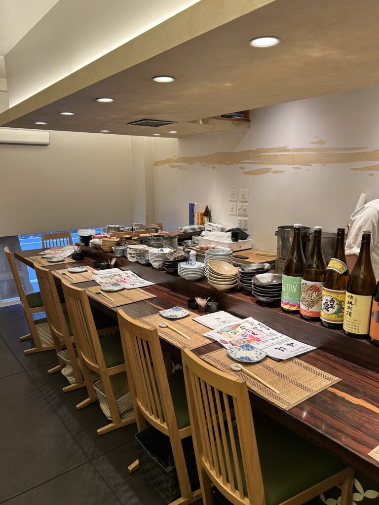 和食割烹店を思わせる落ち着いた店内空間となっていてカウンター席メイン。