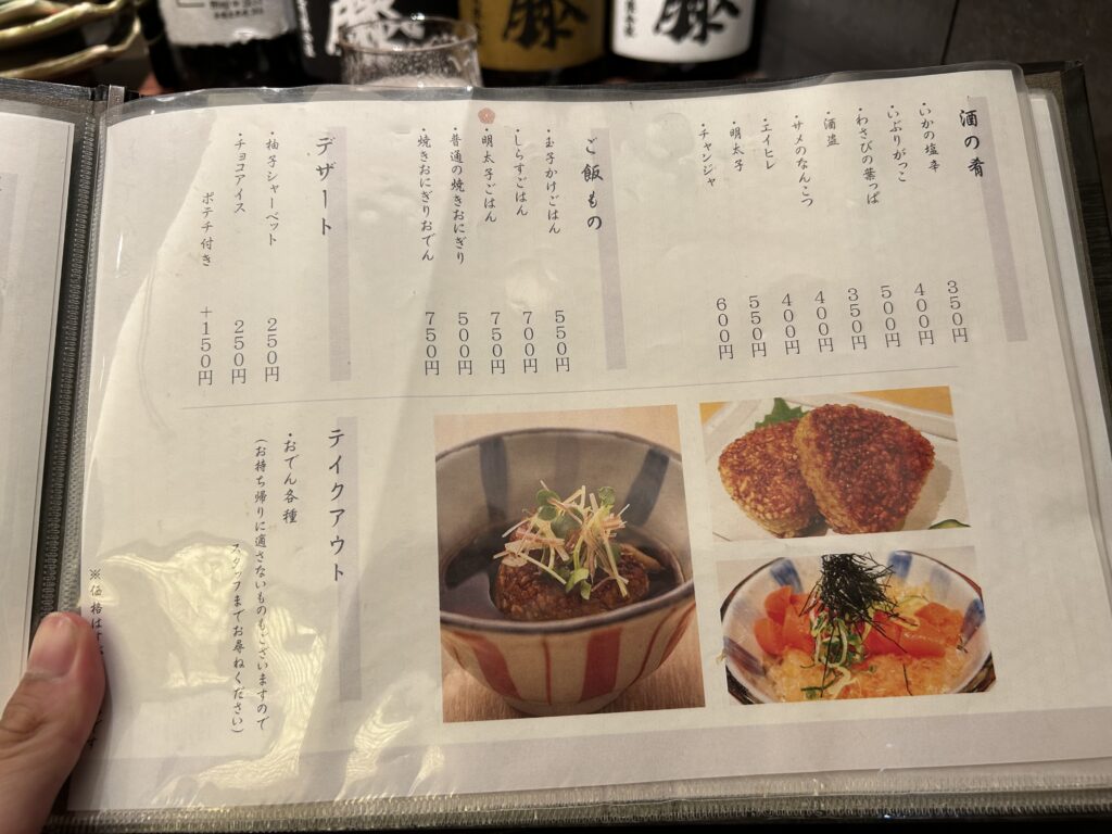 いかの塩辛やサメのなんこつなどのお酒のアテに、ご飯物がありました。