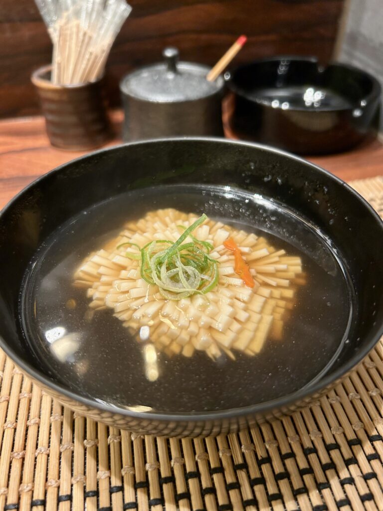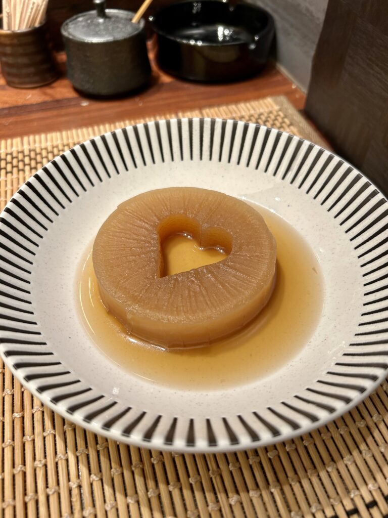 香ばしい焼きおにぎりにお出汁がしみ込み、おでん出汁お茶漬けとして美味しくいただきました。