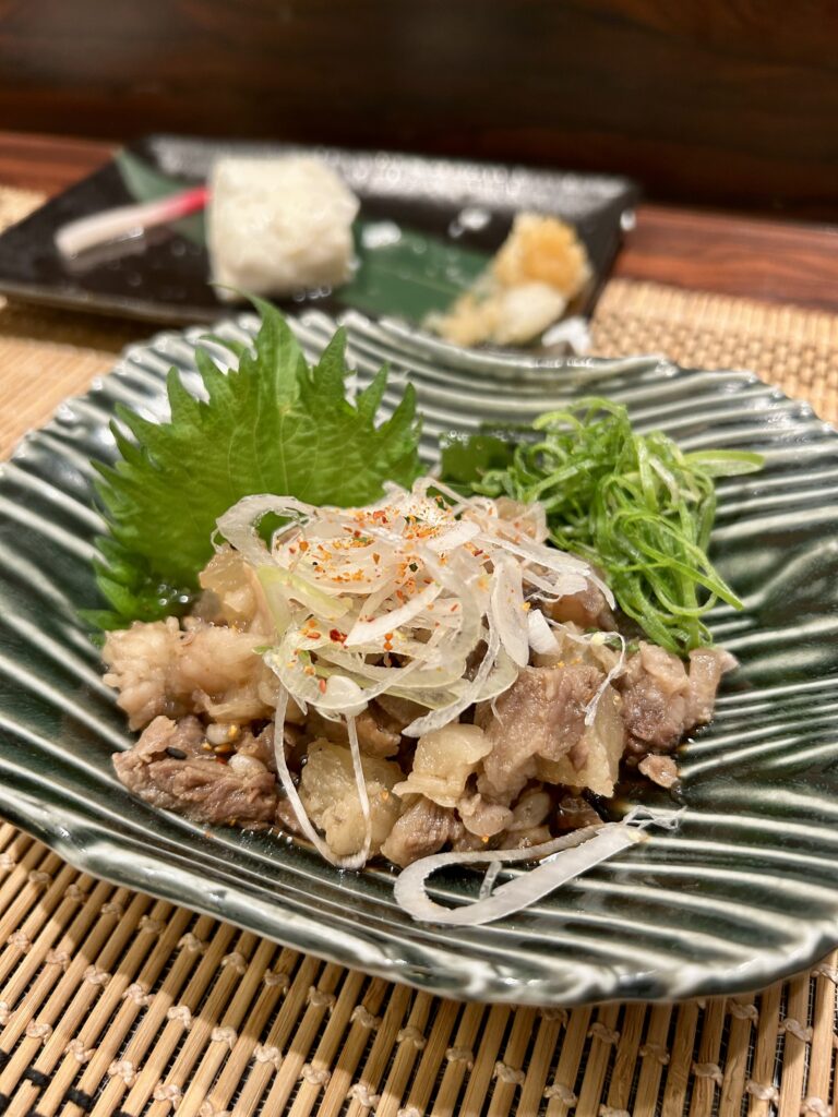 こりこりの牛すじ、噛みしめるとポン酢の爽やかな香りが口の中を駆け抜けてゆきます。