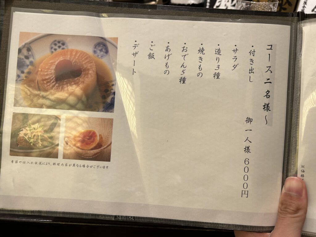 コース料理もあって、おでんの他、造りや焼きものを味わう事ができます。