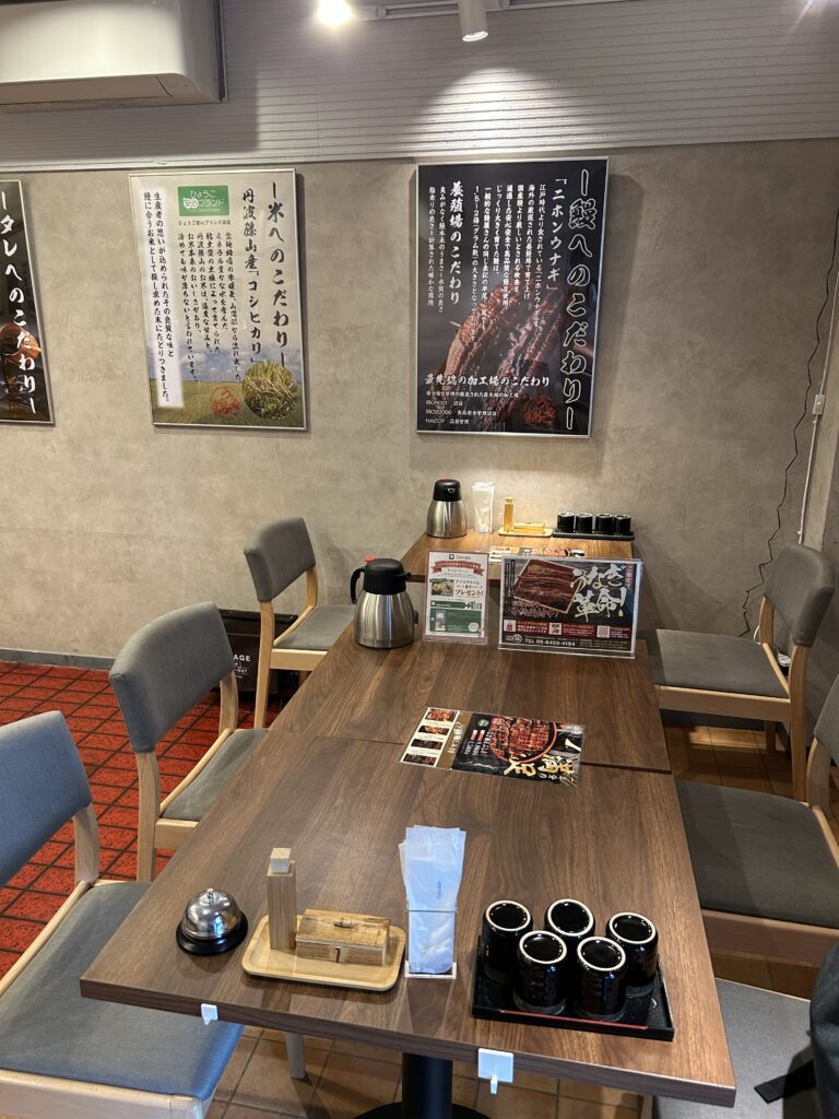 内観は和食店みたいな雰囲気で、カウンター席とテーブル席があり、一人でうなぎを堪能したい時にふらっと立ち寄れますね。