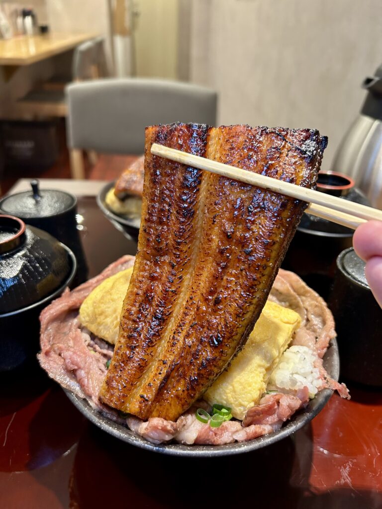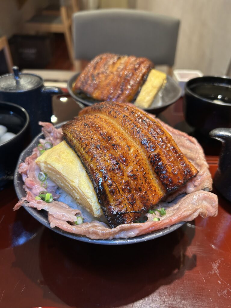 うなぎにだし巻き卵そして和牛という贅沢な組み合わせが堪能できる丼で限定10食となっています。
