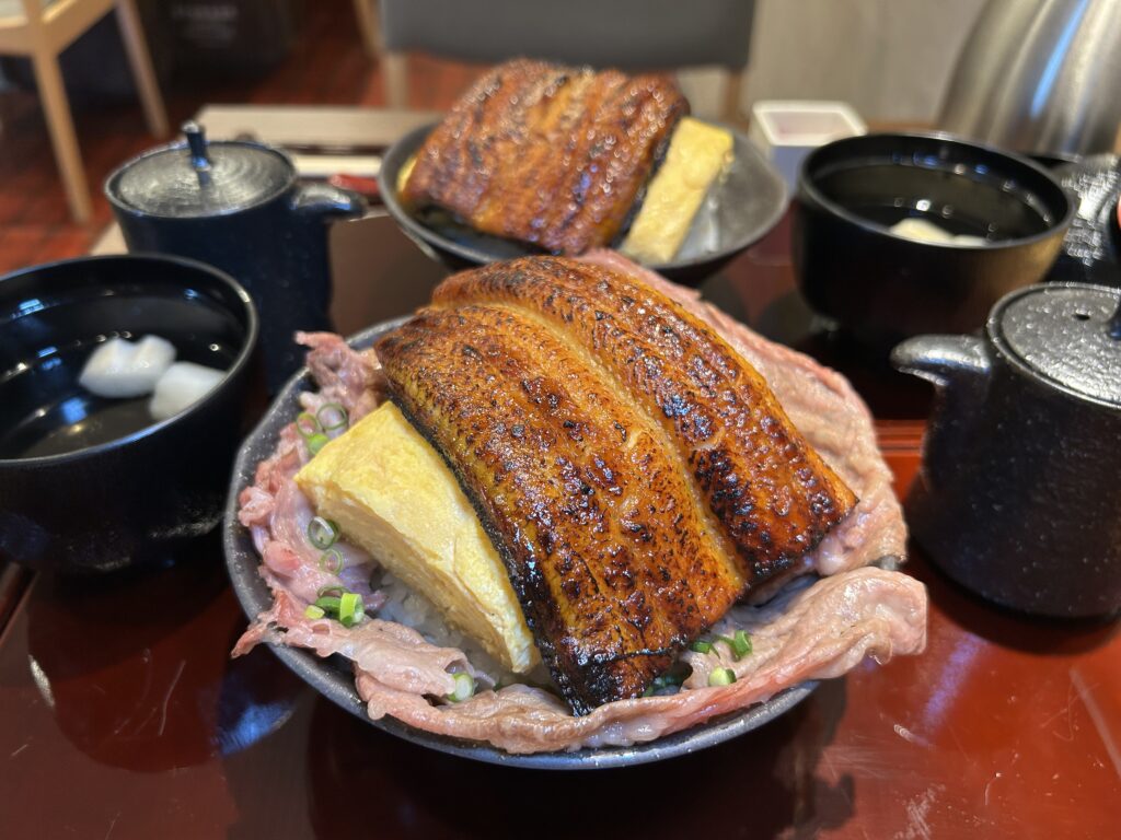 うなぎにだし巻き卵そして和牛という贅沢な組み合わせが堪能できる丼で限定10食となっています。