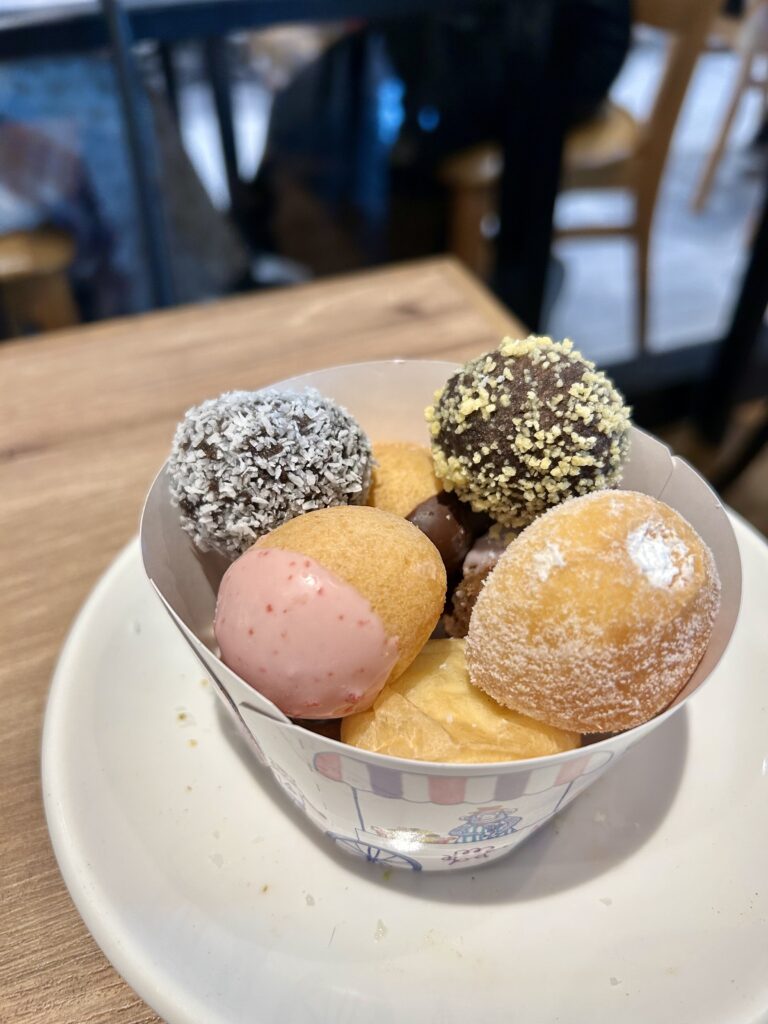 一口サイズでドーナツポップ ポン・デ・ストロベリーボールやドーナツポップ ココナツチョコレートボールといろんなドーナツを食べ比べできるのが嬉しい。