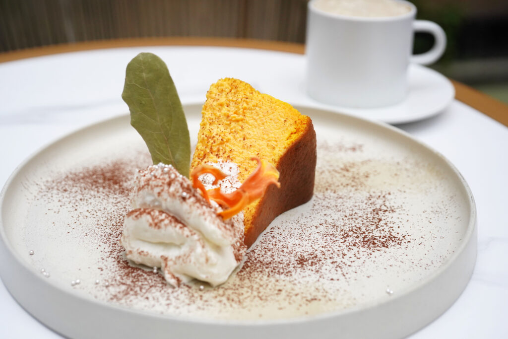 添えられたふわっと軽いクリームシャンティとニンジンチップスを一緒に食べるとまた違った味わいも楽しめます。