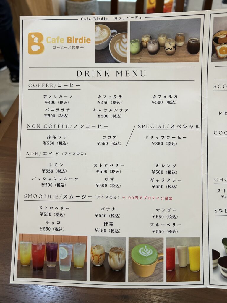 ドリンクメニューはコーヒー、紅茶に加えて、種類豊富なエイドやスムージーがありました。