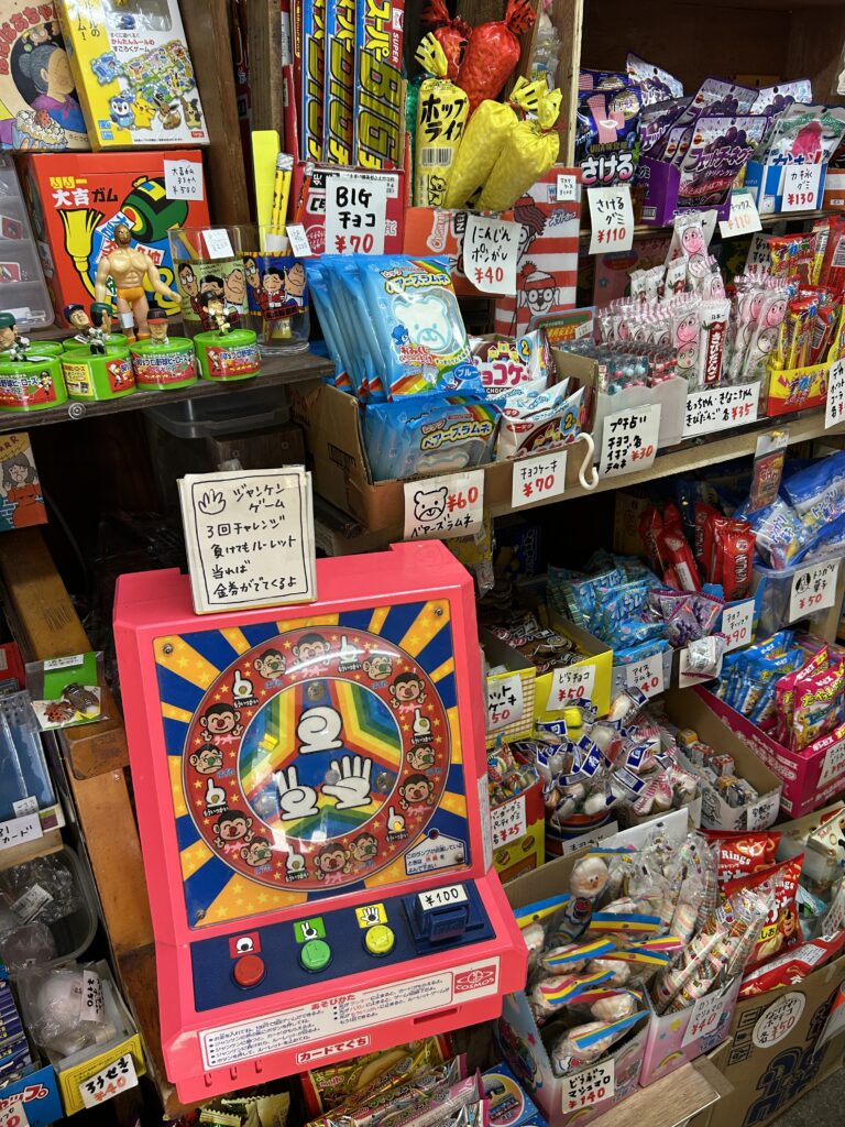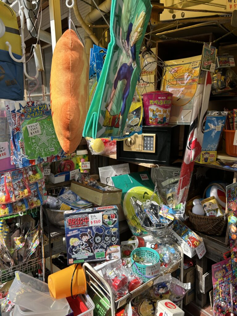 お店の前にはたくさんのお菓子やおもちゃが並んでいました。