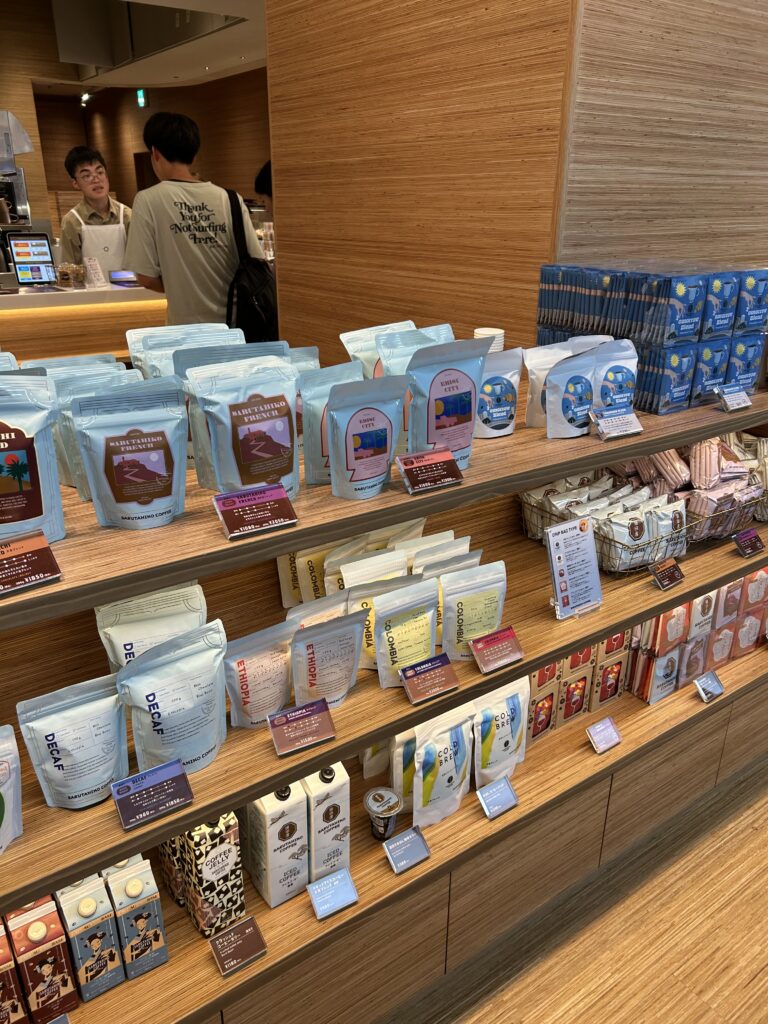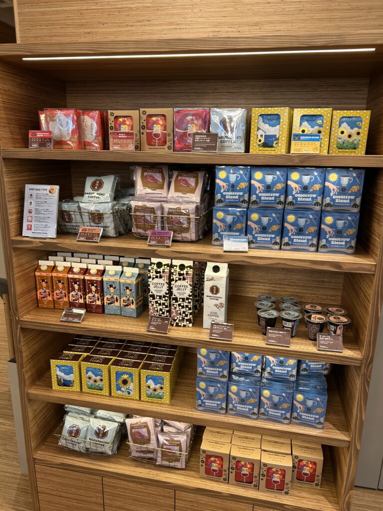 大阪エリア限定ブレンド「明日のブレンド」を始めとしたドリップパック、アイスコーヒー、コーヒーゼリーなども販売されていてお土産にぴったり。