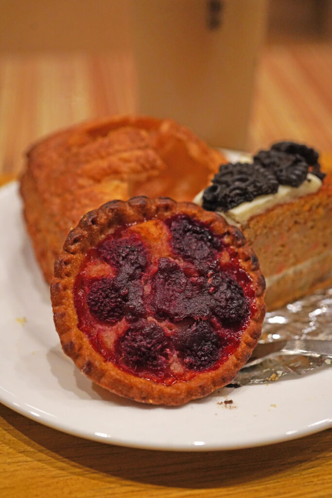 店内にオーブンを設置する数少ない店舗で、クロワッサン、パンオショコラなどのパン類に加えて、焼きたてのアップルパイ,キーマカレーパイ、木苺のタルトなどを楽しむ事ができます。