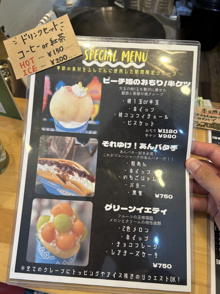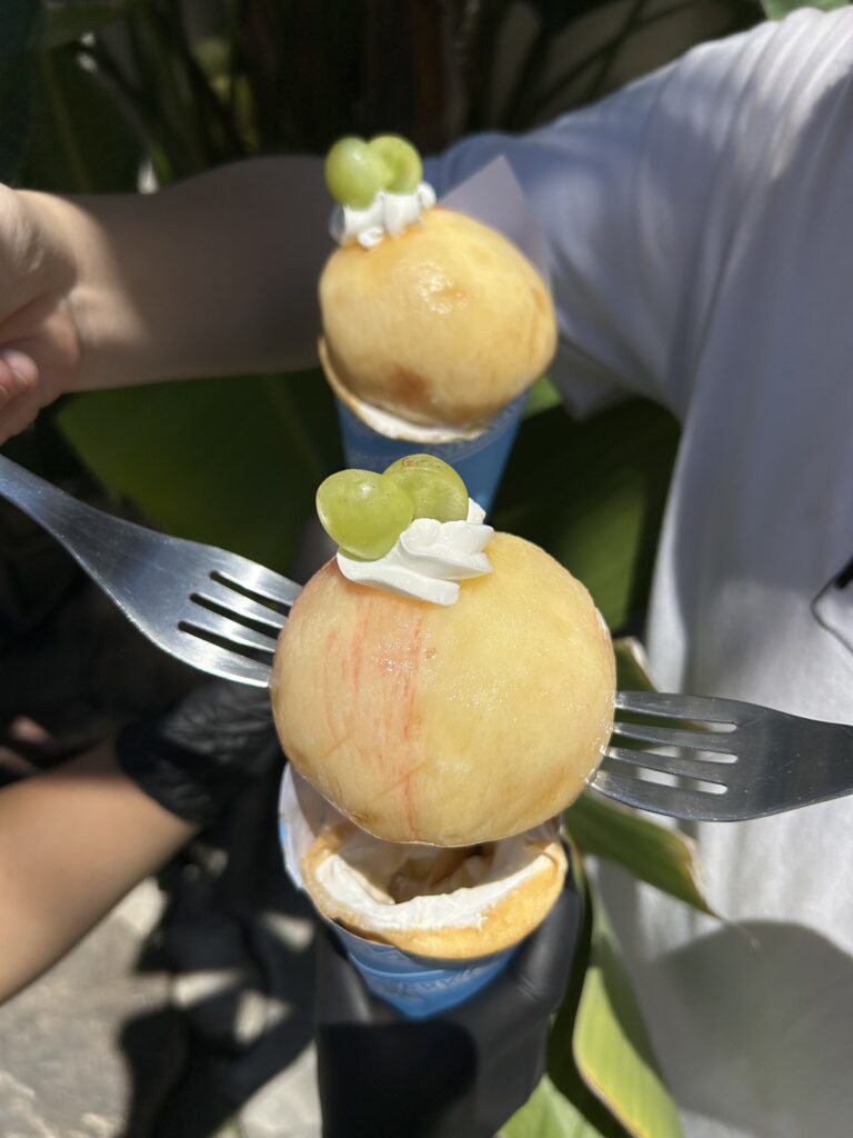 7月には桃を一個使ったものも登場、8月くらいまで提供予定らしいです。(2025年7月)