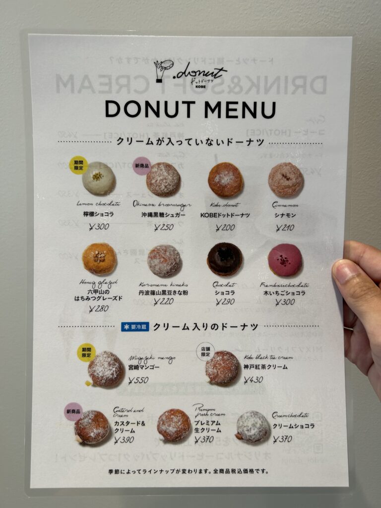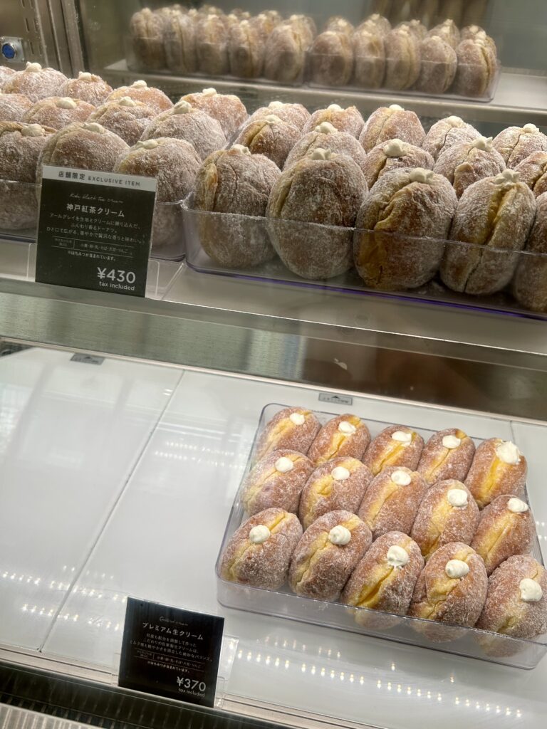 クリームを詰めたドーナツは、プレミアム生クリーム、クリームショコラに二種類のクリームが楽しめるカスタード&クリーム、店舗限定の神戸紅茶クリームなどがありました。