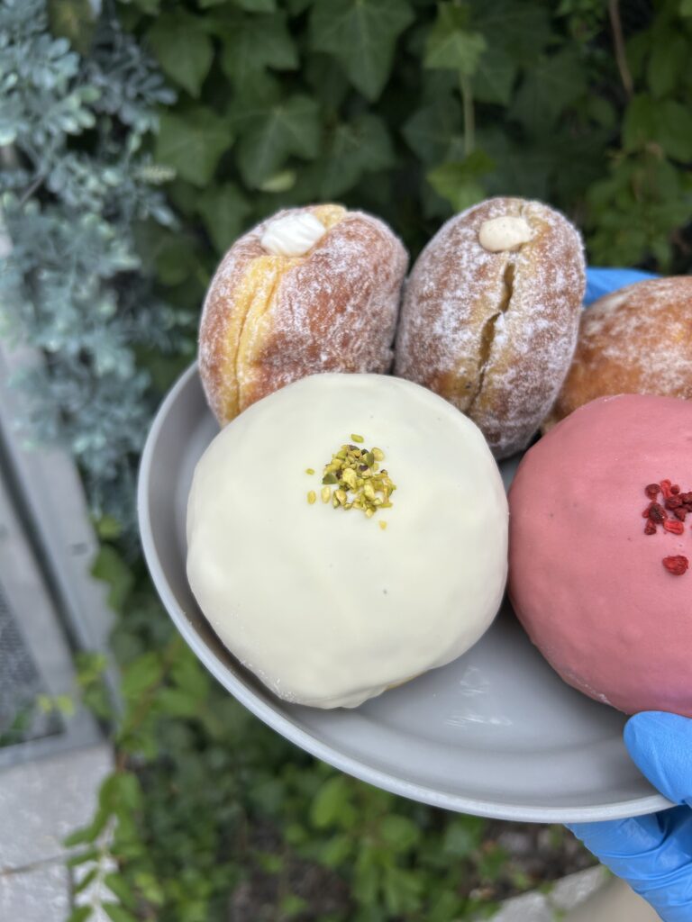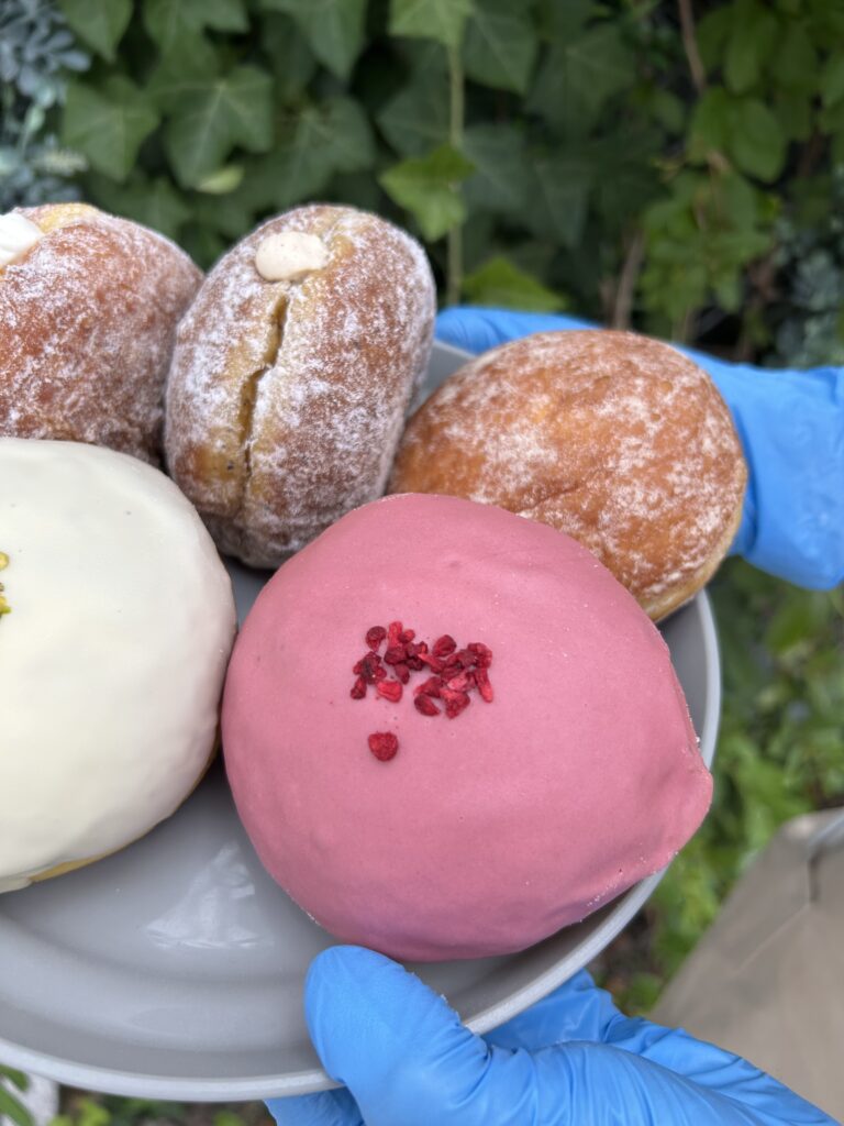 フランボワーズの甘酸っぱさにトッピングされたドライフランボワーズの合わさり爽やかなドーナツとなってます。