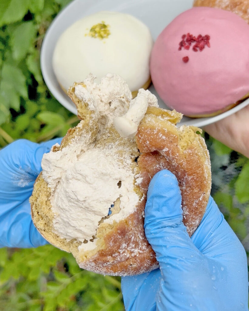 何度も配合を検討した結果生まれたこだわりの自家製生クリームを詰め込んだドーナツ。