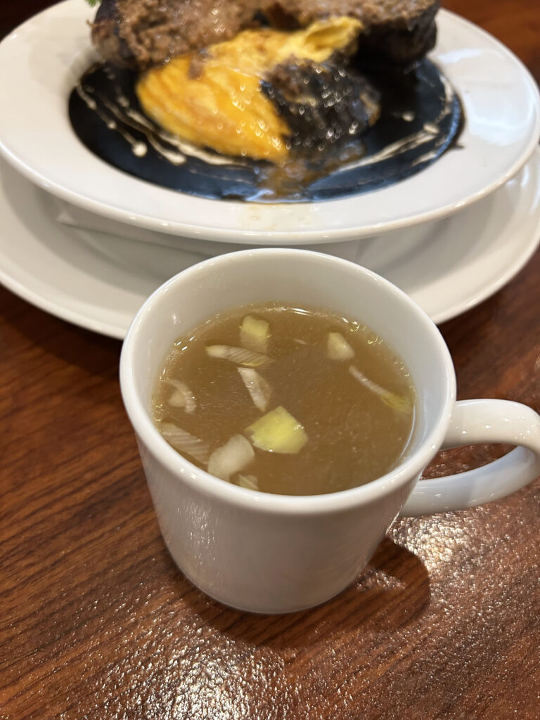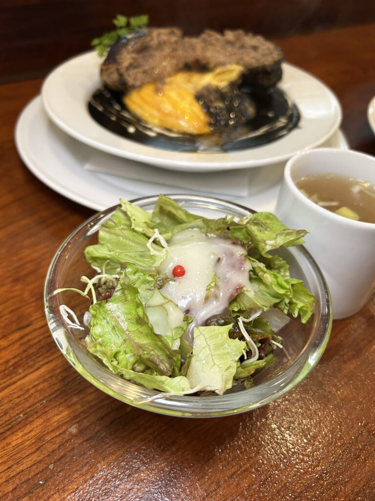 ライスかパンを選べ、オムバーグ同様にサラダとスープがついてきます。